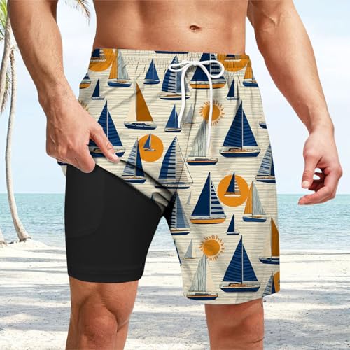 HOT ! Swim Trunks with Compression Liner - Tropical Mens Swim Shorts,5.5-inch Inseam Vacation Beach Swimwear