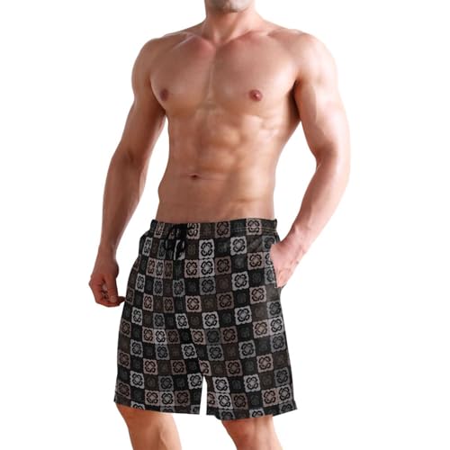 Quick Dry Tile Men's Swimming Shorts Swim Trunks with Mesh Lining Beach Wear - S 1
