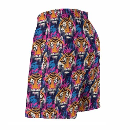Hawaiian Shorts for Men - Comfy Cool Tiger Pink Graffiti Print Mens Swim Trunks Bathing Suits with Mesh Lining 7