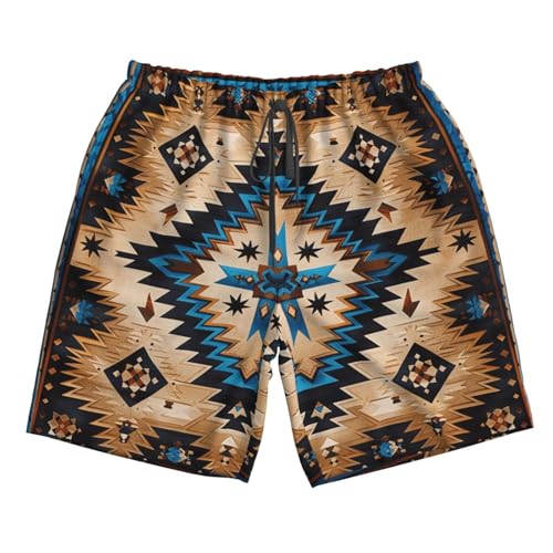 Native American Diamond Southwestern Aztec Blue Brown Men's Quick Dry Swim Trunks Surfing Beach Mesh Board Shorts 3