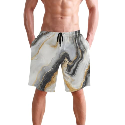 HOT ! Black White Gold Marble Men's Swim Trunks Quick Dry Novelty Beach Shorts Swimming Board Shorts with Pockets