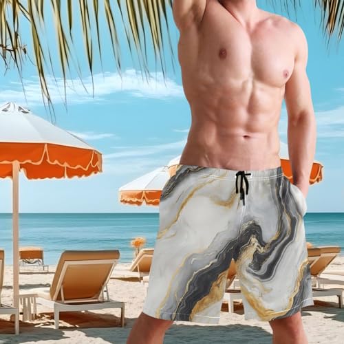 Black White Gold Marble Men's Swim Trunks Quick Dry Novelty Beach Shorts Swimming Board Shorts with Pockets 6