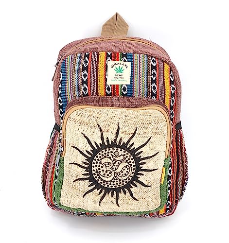 Unique design Sun and OM print Himalaya Hemp Hippie Backpack Festival Backpack Hiking Backpack FAIR TRADE Handmade with Love. (BROWN) 1