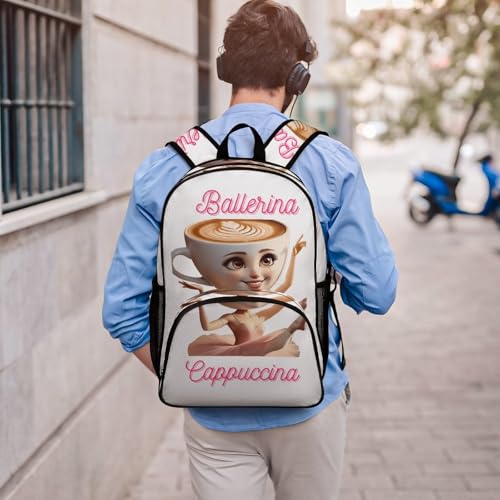 Ballerina-cappucina Merch Large Travel Backpack Italian-Brainrot Meme Waterproof Lightweight Daypack White 44x32x19cm 6