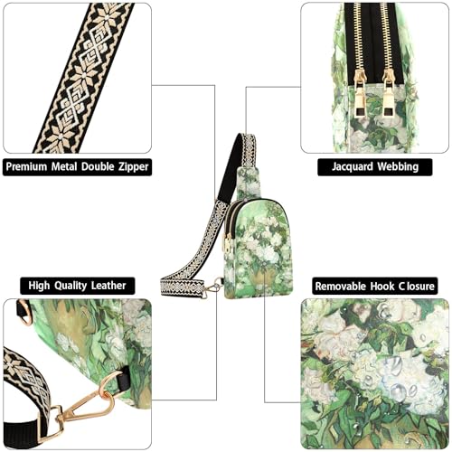Sling Bag For Women-Van Gogh Masterpiece White Rose Oil Painting,Small Crossbody Backpack,Travel Hiking Chest Bag Daypack 5