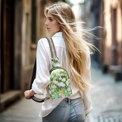 Sling Bag For Women-Van Gogh Masterpiece White Rose Oil Painting,Small Crossbody Backpack,Travel Hiking Chest Bag Daypack 1