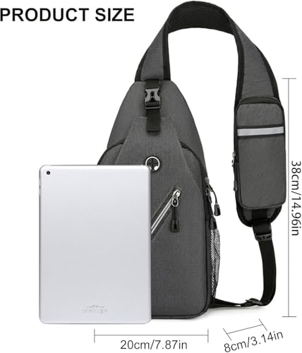 • LARGE CAPACITY ANG MULTIFUNCTIONAL - This crossbody bag measures 7.5 x 14.5x 4 inches (L x W x H),The vest backpack has three pockets, the outermost pocket can hold your bank card, the middle pocket can hold your tablet, and the innermost pocket has a layered design to hold your books, umbrellas, and more. The mesh pockets on both sides can hold keys and card bags, and the pockets on the shoulder straps can store your phone. Large capacity, multifunctional, worry free travel