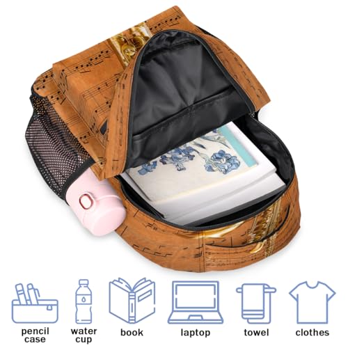 Backpack for Women Men, Saxophone Casual Backpacks, Waterproof Lightweight Musical Notes Daypack Bags for Travel Camping Work 6