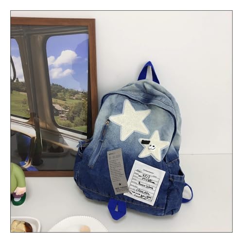 HOT ! Vintage Y2K Backpack, Heavyweight Denim Grunge Bookbag for women men, Aesthetic Daypack for Travel Concerts (Blue)