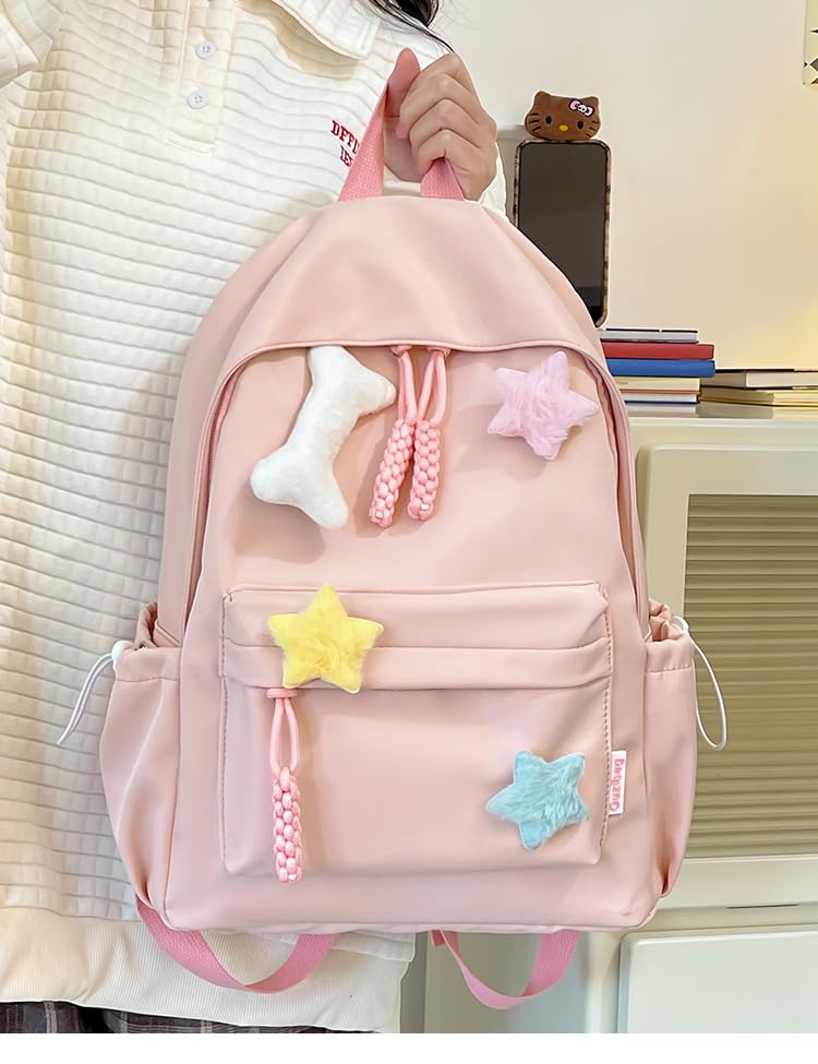 HOT ! Cute Backpack for Women, Kawaii Y2K Backpack Daypack Aesthetic Bookbag Daypack Durable Harajuku Shoulder Bags Daily Use (Pink+pendant)