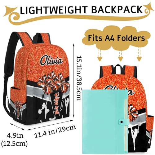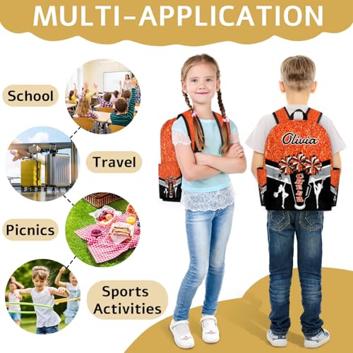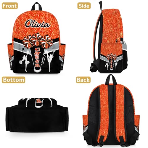 HOT ! Custom Cheer Backpack for Women Cheerleaders, Personalized Waterproof Casual Daypack Bag with Name for Camping Hiking, Orange Glitter Shoulder Bag