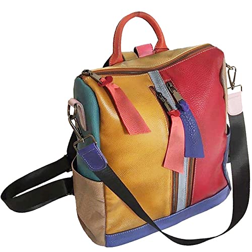 More information about Downupdown 2 in 1 Backpacks for Women Genuine Leather Backpack Single Shoulder Bag Zipper knapsack Satchel Casual Daypack -Multicolour