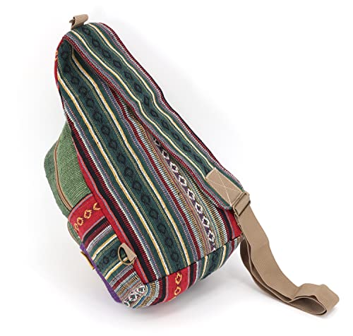 HOT ! Hemp Sling Backpack Hippie Backpack Festival Backpack Hiking Backpack 100% Hemp| Crossbody Bag FAIR TRADE Handmade with Love., Green