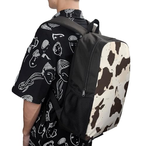 Brown Cow Print Unisex Backpack 17" Casual Daypacks Simple Shoulders Bag for Camping Hiking Travel Gear 1
