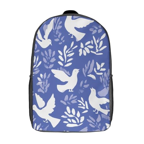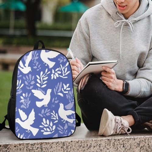 Doves Floral Aesthetics Unisex Backpack 17" Casual Daypacks Simple Shoulders Bag for Camping Hiking Travel Gear 7