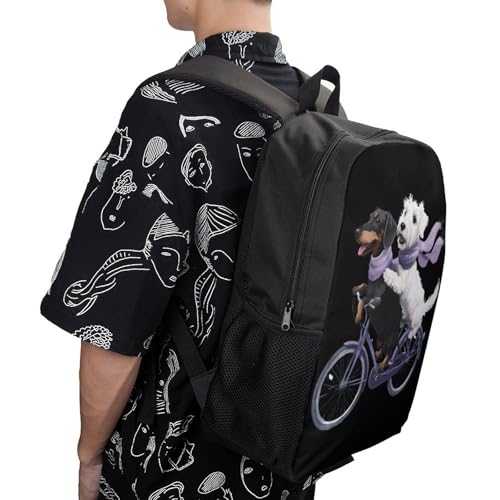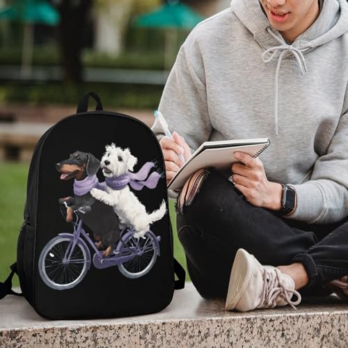 Dachshund Schnauzer Dog Cycling Bike Unisex Backpack 17" Casual Daypacks Simple Shoulders Bag for Camping Hiking Travel Gear 5