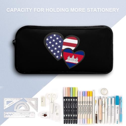 HOT ! Interlocking Hearts U.S.A. Cambodia Flag Funny Backpack Set Lunch Bag Pencil Case Makeup Bag 3 in 1 for Men Women Travel