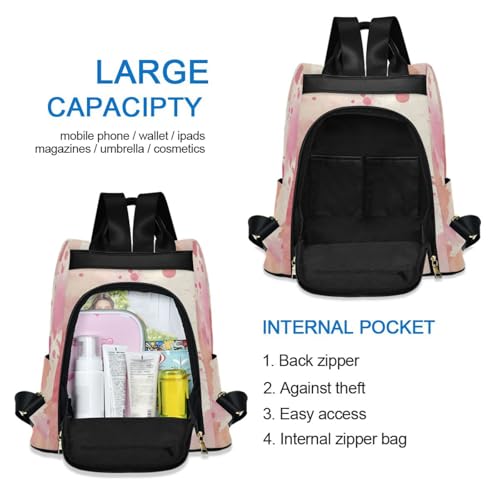 KLL Watercolor Abstract Splash-ink Peach Fashion backpacks for college Anti-theft backpack for women work for Daily College Shopping with Pom-pom keychain 1