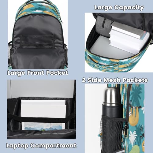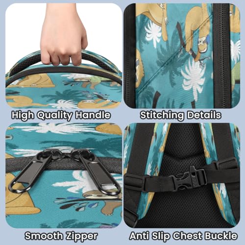 Coconut Tree Sloths Backpack with Chest Strap Reflective Lightweight Travel Hiking Backpack for Men Women Waterproof Daypack Back Pack for Commute Camping 3