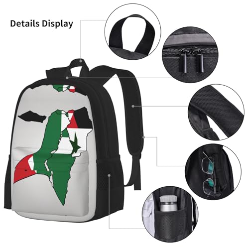 nanger State Of Palestine Flag Map Print 3-Piece Set Backpack, Lunch Bag And Pencil Case, For Travel, College, And Daily Use 6