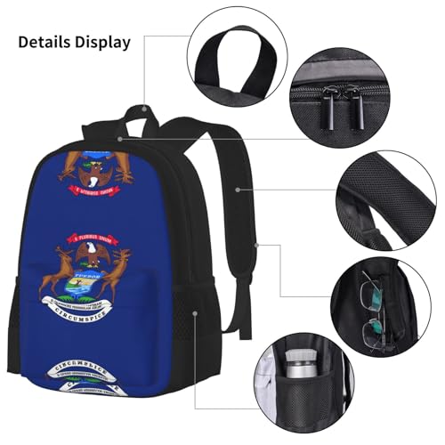 HOT ! nanger Michigan State Flag Print 3-Piece Set Backpack, Lunch Bag And Pencil Case, For Travel, College, And Daily Use