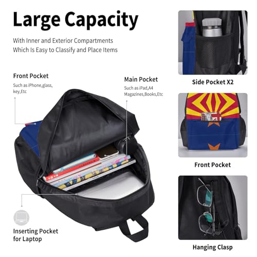 nanger Arizona Flag Print 3-Piece Set Backpack, Lunch Bag And Pencil Case, For Travel, College, And Daily Use 7