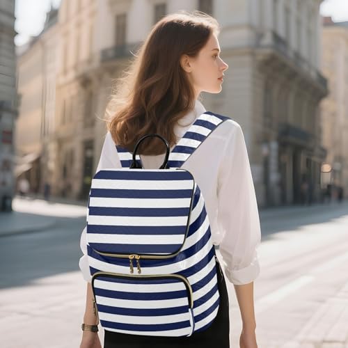KLL Blue and White Horizontal Stripes Backpack for Women Premium Casual Ladies Shoulder Bag for Work Sports Travel 5