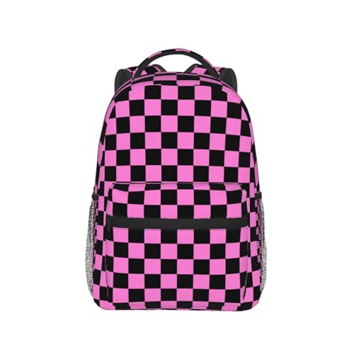 Pink Black Checkered Chessboard Flag Lightweight Backpack Travel Casual Bags for Women or Men 15.7 Inches 1