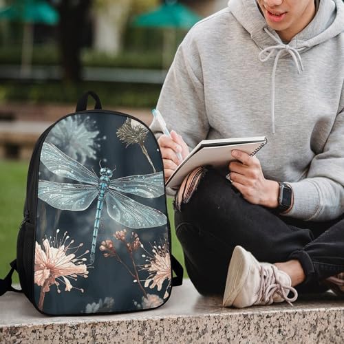 HOT ! Dragonfly Flower Backpack for Men Women, Heavy Duty Backpack Large Capacity, Durable Lightweight Travel Daypack