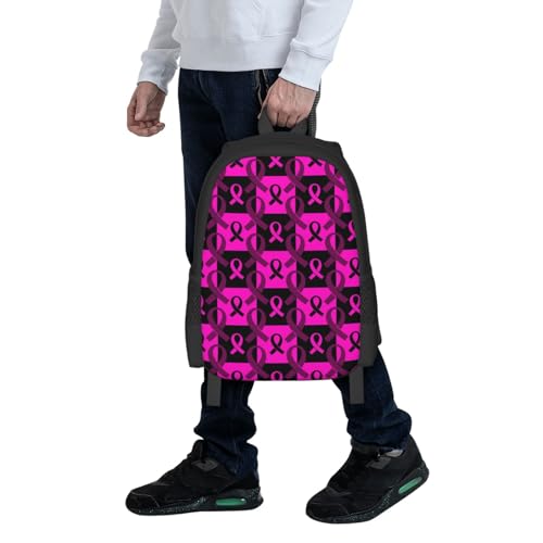 Breast Cancer Awareness Pink Ribbon Backbags Large Adjustable Backpack Lightweight Daypack for Men Women 16.5 Inches 3