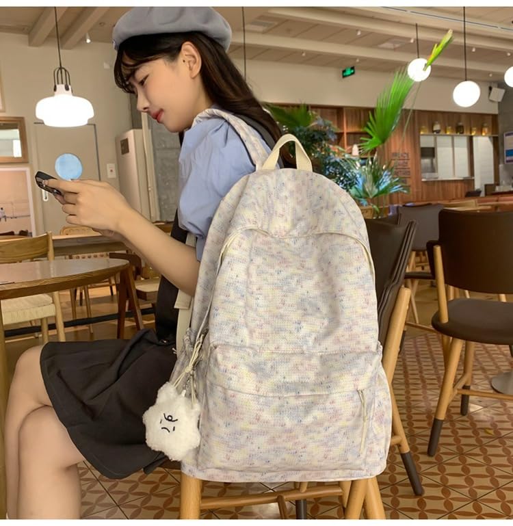 HOT ! Cute Backpack Kawaii Shoulder Bag (Rainbow Design) – Y2k Aesthetic Preppy Daypack Coquette Stylish Bookbag (Purple)