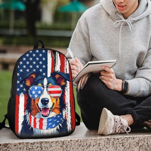 Border Collie Dog America Flag Backpack Simple Leisure Travel Backpack Outgoing Daypack 17 Inch 4