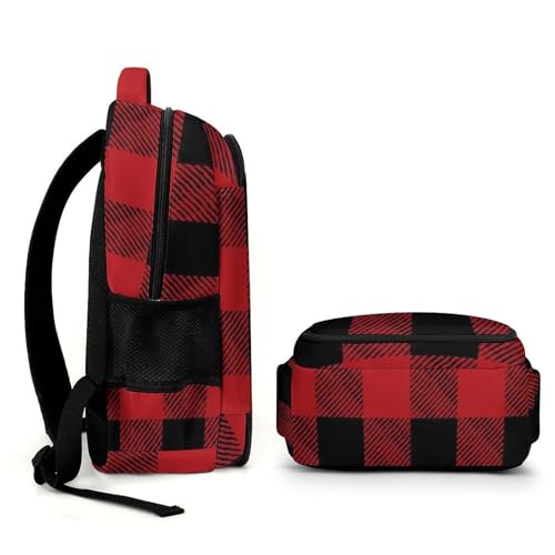 Men's Commuter Bag Large Travel Bag Portable Work Backpack With Double Zippers Red Black Buffalo Check Plaid Pattern 6