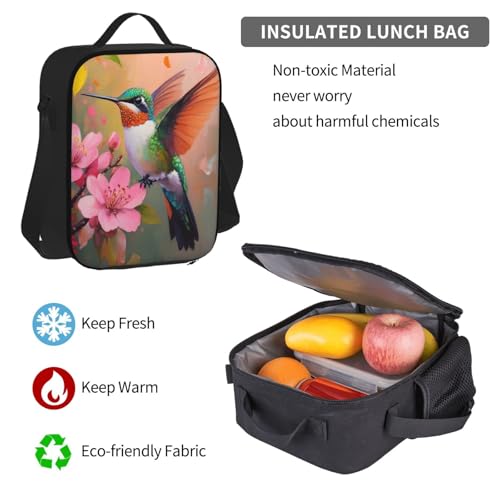 Hummingbird Flower Spring Backpack With Pencil Case Lunch Bag Combination For Women Men 4