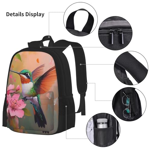 Hummingbird Flower Spring Backpack With Pencil Case Lunch Bag Combination For Women Men 7