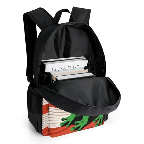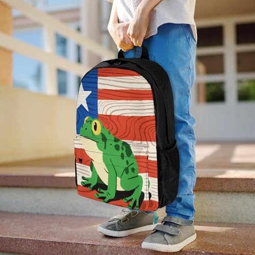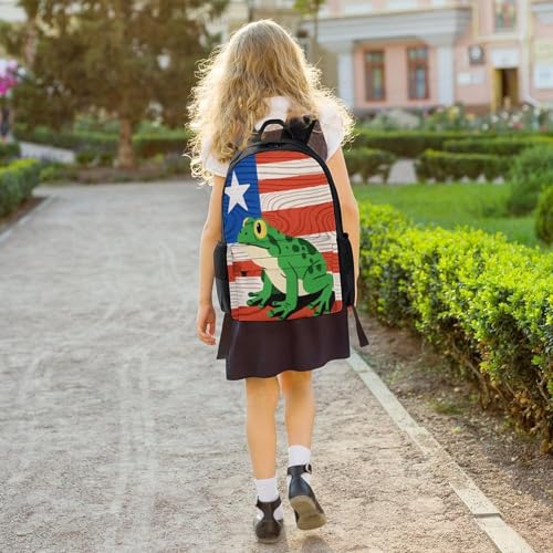 Supdreamc Polyester Daypack Bookbag for Gym Business Bicycle - Large Capacity Multipurpose Anti-Theft Carry On Bag, Puerto Rico Flag Frog Art Travel Hiking Daypack 6