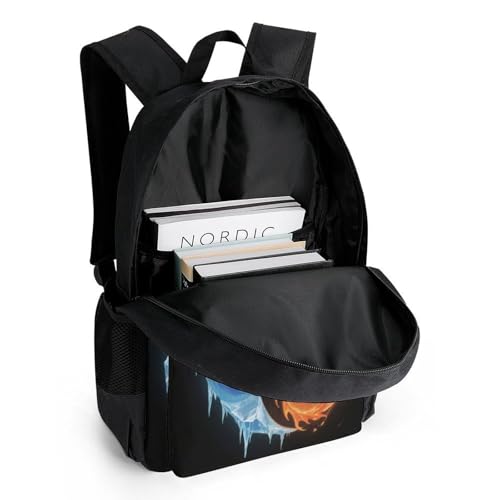 Supdreamc Men Women Polyester Ice And Fire Dragon Yin Yang Art Daypack Backpack Large Capacity Carry On Bag With Smooth Zippers for Hiking Picnic Walking Cycling 7