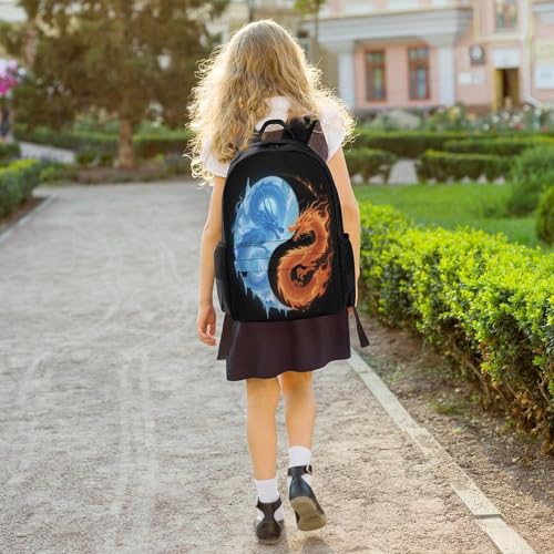 Supdreamc Men Women Polyester Ice And Fire Dragon Yin Yang Art Daypack Backpack Large Capacity Carry On Bag With Smooth Zippers for Hiking Picnic Walking Cycling 5