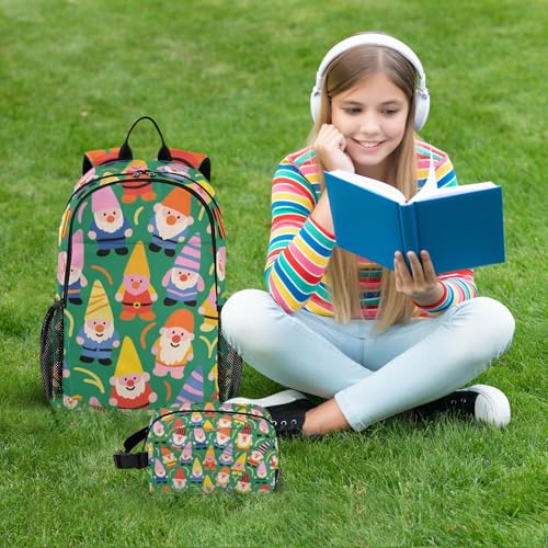 KLL Cartoon Cute Colorful Gnome Boy Backpack With Lunch Bag (scenario) Backpack For Girls 9-10 years 1
