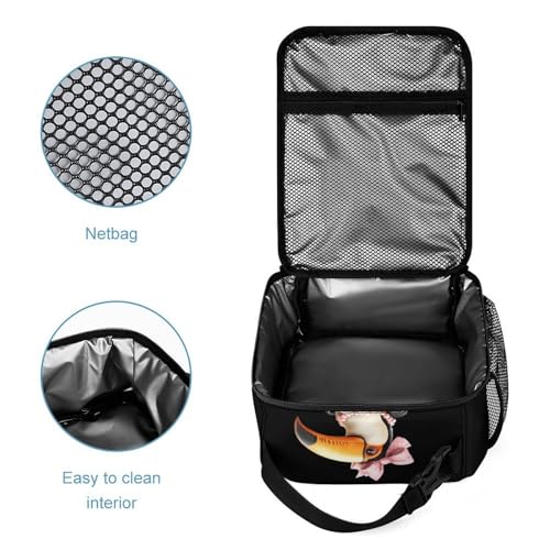 Toucan Wearing Pearl Necklace Printed Backpack with Lunch Box Bag Pencil Case Pouch 3pcs Daypack Set for Women Men 6