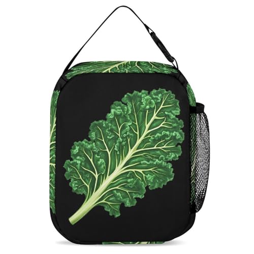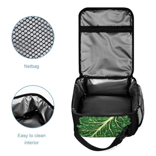 Green Kale Leaf Printed Backpack with Lunch Box Bag Pencil Case Pouch 3pcs Daypack Set for Women Men 6