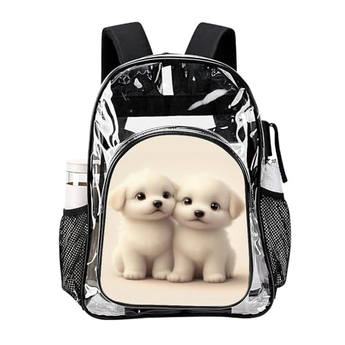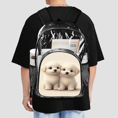 Water-Resistant Portable Transparent Backpacks with Side Mesh Pockets for Women and Men Casual Daily Use (Cute Animal Maltese) 1