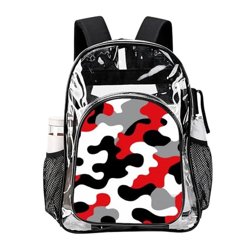 Waterproof See Through Plastic Backpacks, Casual Fashion Clear Bags Military Red Camo Army Camouflage for Women and Men Work, Office, Beach, Travel Use 7