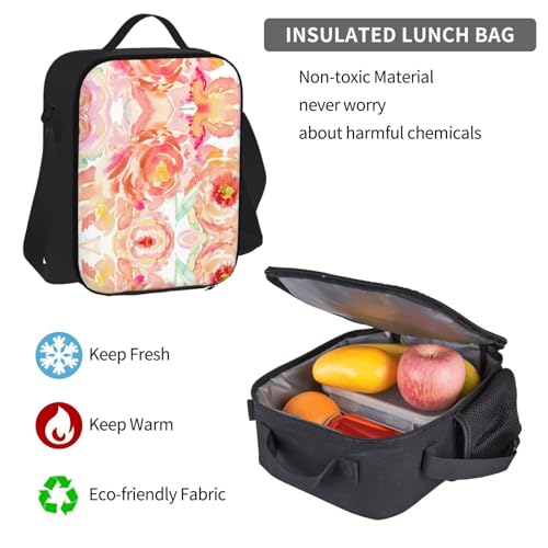 Peach Peony Print 3 Piece Set Backpack, Lunch Bag, Pencil Case, Cute Sturdy For College And Travel 6
