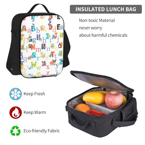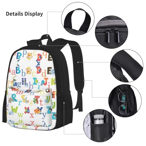 Colourful Animal Alphabet Print 3 Piece Set Backpack, Lunch Bag, Pencil Case, Cute Sturdy For College And Travel 6