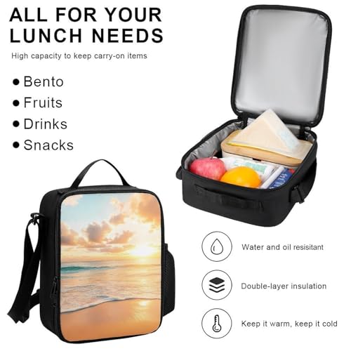 More information about Beach Sunrise Over Sea Backpack 3 Set with Lunch Bag Insulated Shoulder Meal Tote Bags Pencil Case Box Casual Daypack