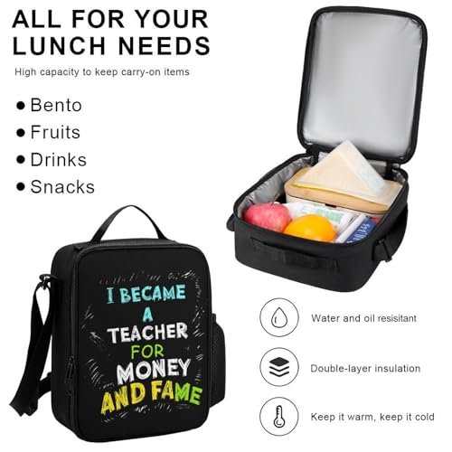 I Became A Teacher For Money And Fame Backpack 3 Set with Lunch Bag Insulated Shoulder Meal Tote Bags Pencil Case Box Casual Daypack 5