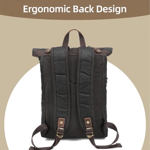 More information about Waxed Canvas Roll-top Backpack for Men,X-Shaped Belt Vintage Rucksack, Large Daypack Casual Hiking Travel Backpack (Black)