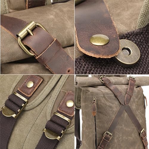 • 【Material & Versatility】Made from waxed canvas and crazy horse leather, this waterproof backpack boasts a unique retro finish. Use it as a laptop bag, camping backpack, or motorcycle rucksack—ideal for commuting, traveling, or dating!