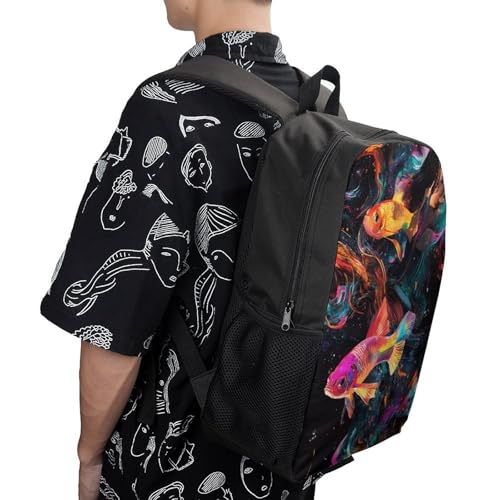 Colorful Betta Fish Unisex Backpack 17" Casual Daypacks Simple Shoulders Bag for Camping Hiking Travel Gear 1
